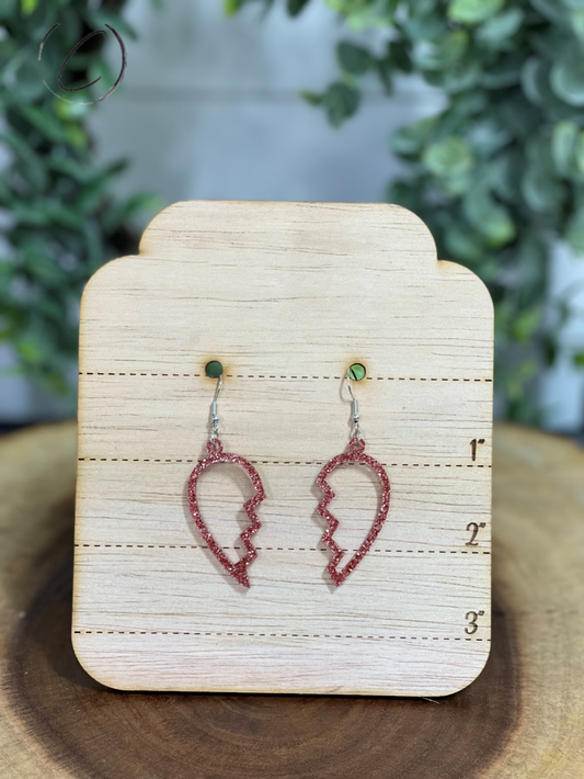Heart Breaker Red Glitter Dangle Earrings