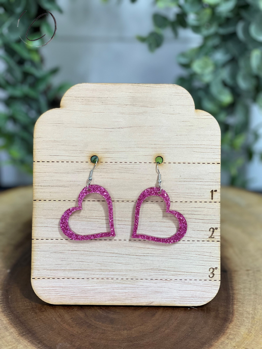 Heart Outline Pink Glitter Dangle Earrings