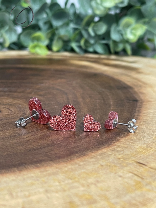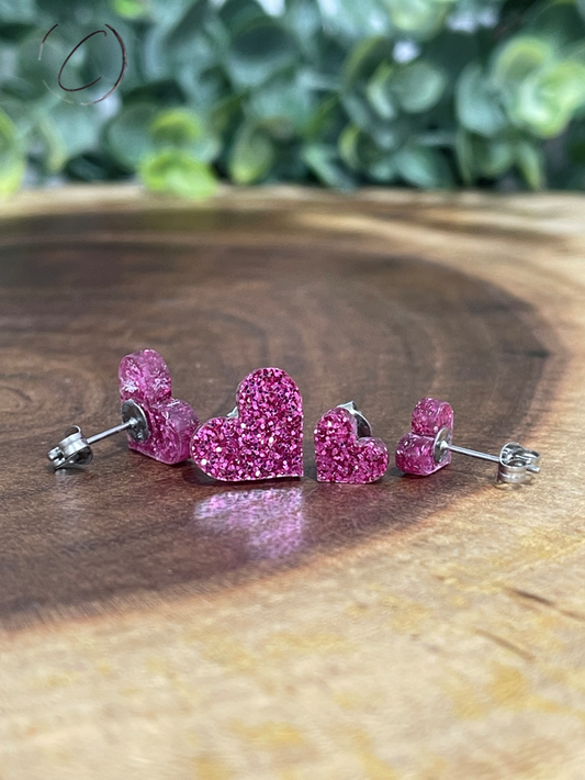 Heart Pink Glitter Stud Earrings