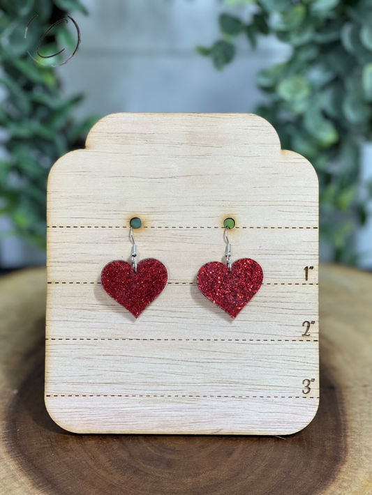 Heart Red Glitter Dangle Earrings