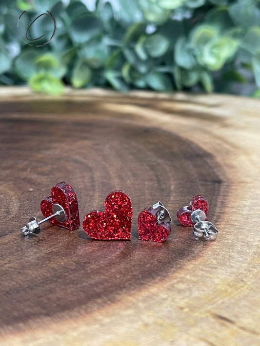 Heart Red Glitter Stud Earrings