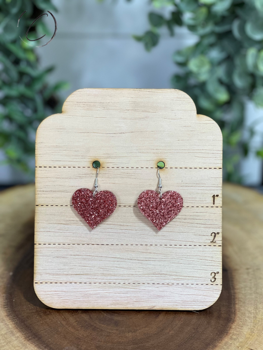 Heart Pink Glitter Dangle Earrings