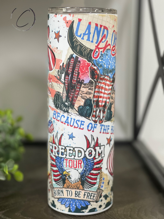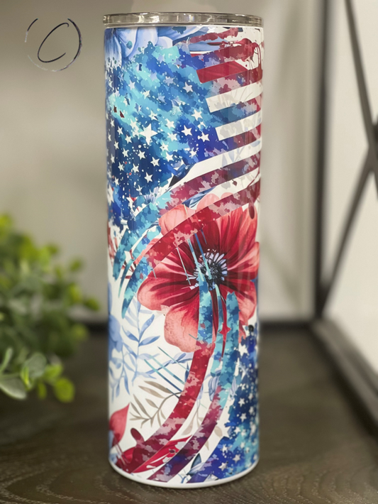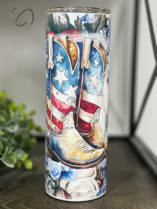 Floral Patriotic Cowboy Boots 20oz Skinny Tumbler