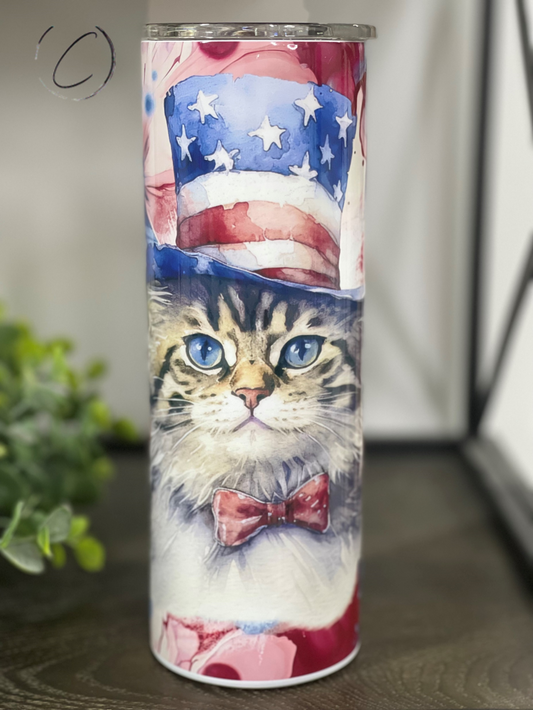 Patriotic Alcohol Ink Cat 20oz Skinny Tumbler