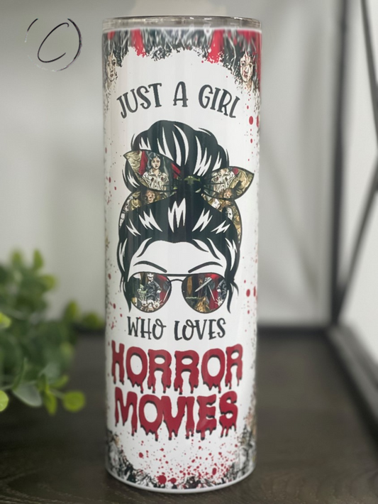 Just A Girl Who Loves Horror Movies 20oz Skinny Tumbler