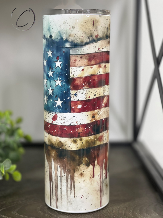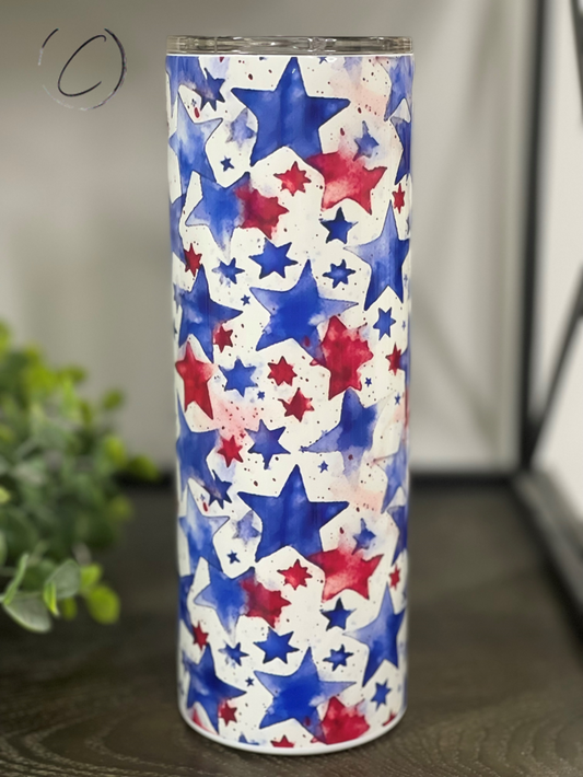 Watercolor Patriotic Stars 20oz Skinny Tumbler