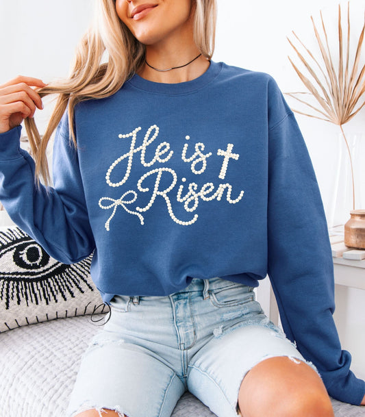 Faux Pearl He Is Risen Sweatshirt