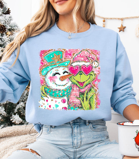 Snowman Green Cartoon Sweatshirt