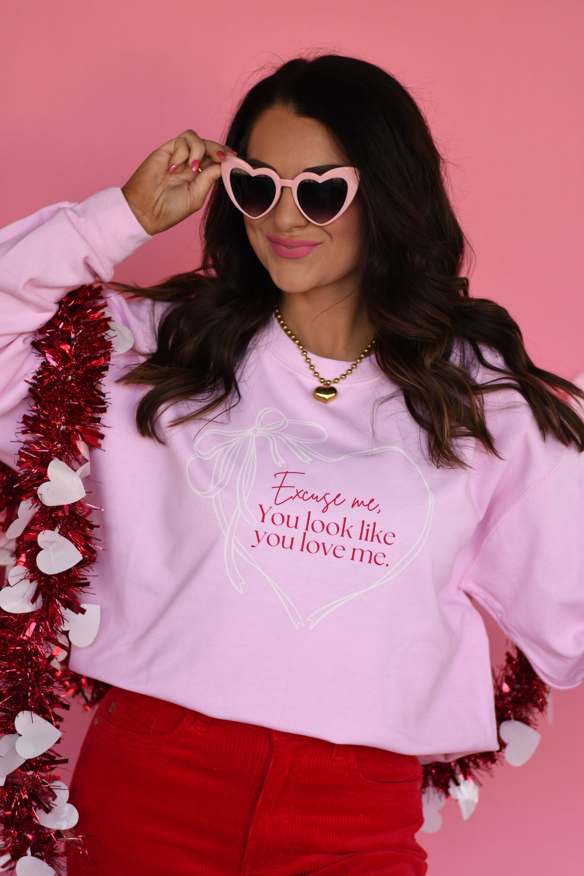 Excuse Me, You Look Like You Love Me Heart Bow Sweatshirt