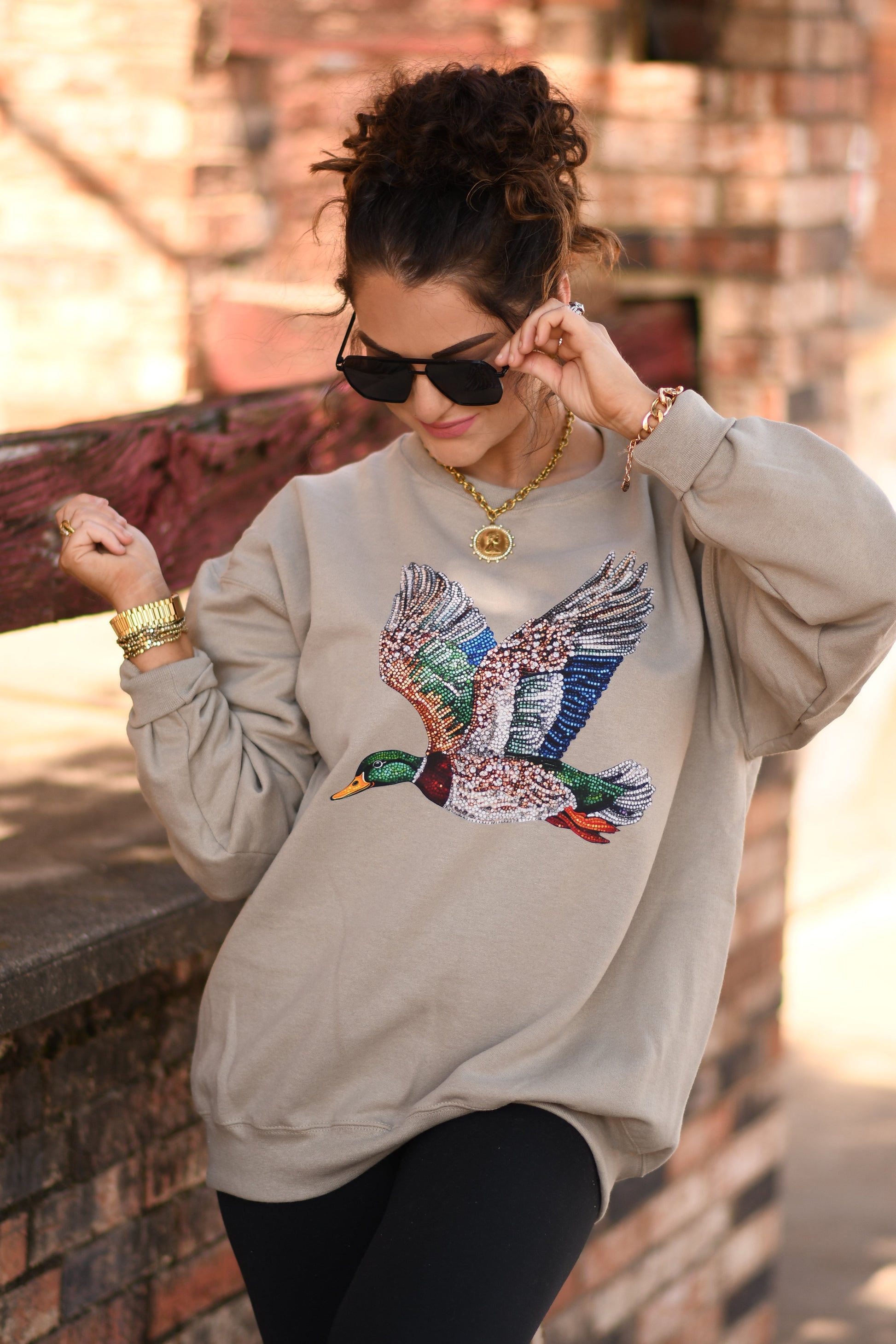 Faux Rhinestone Duck Sweatshirt