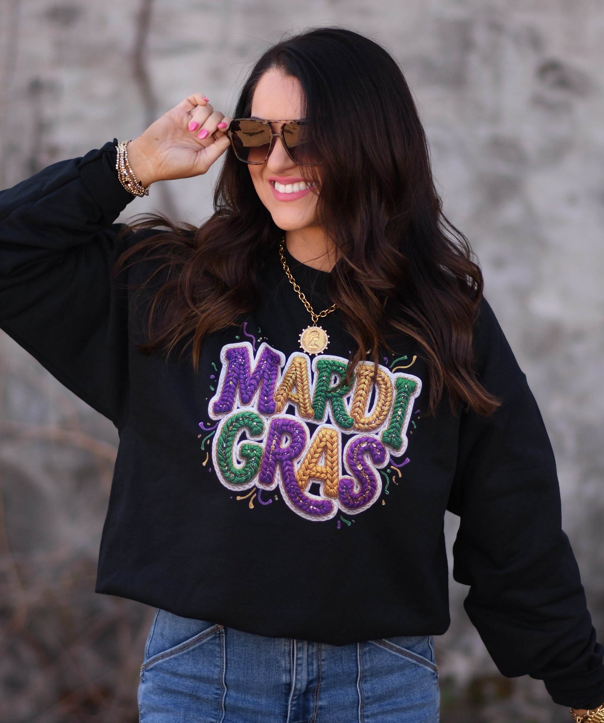 Mardi Gras Faux Yarn Confetti Sweatshirt