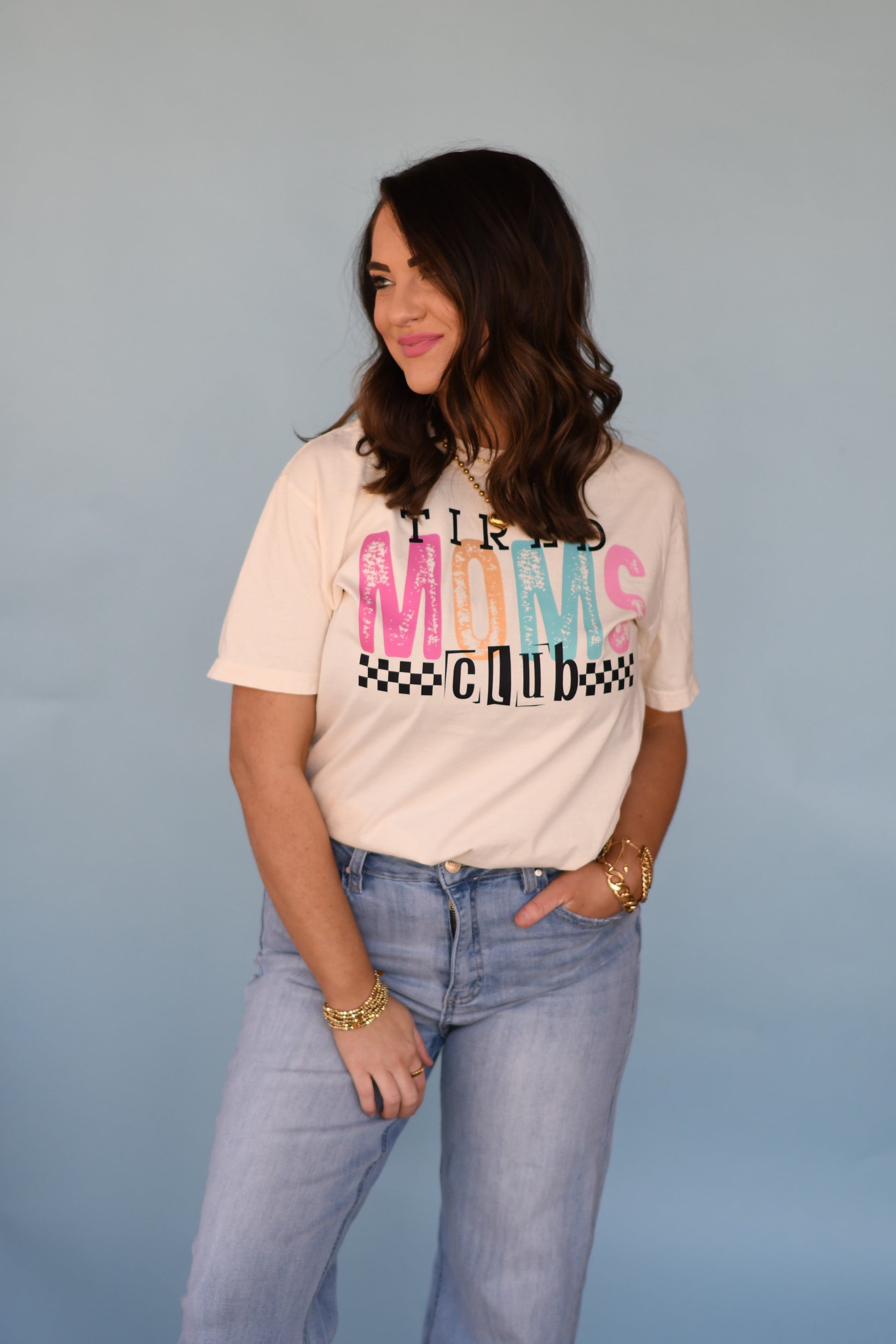 Tired Moms Club Checkered Tee